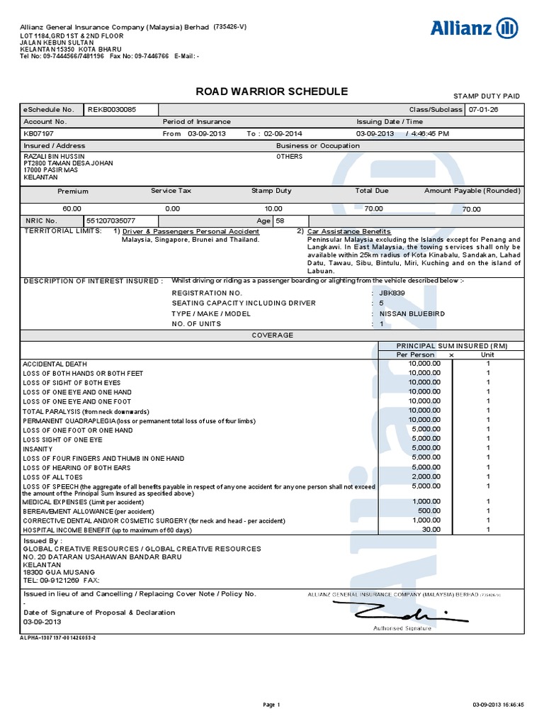 Insurance Cover Note Malaysia Lounsfe
